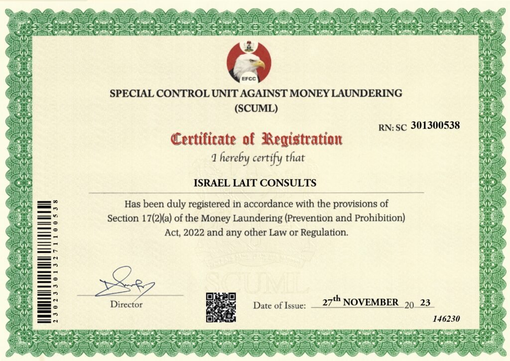As the founder of Israel LaIt Consults, he has successfully handled numerous registrations with efficiency and precision, making the process simple and stress-free for clients across various sectors.