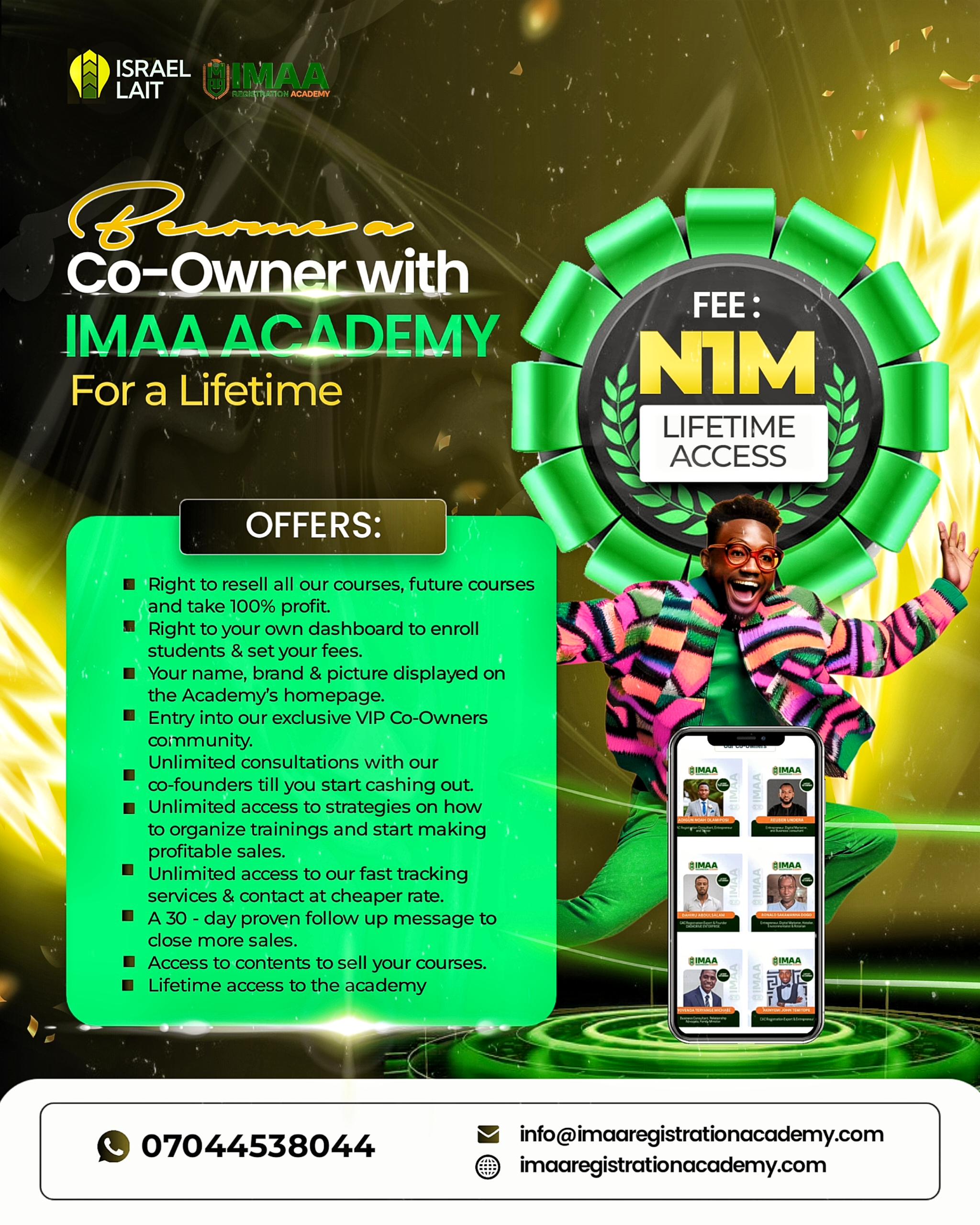 He is also the driving force behind IMAA Registration Academy, where his training and consultation programs have empowered many to build profitable businesses by offering brand registration services and making a real impact in their communities.