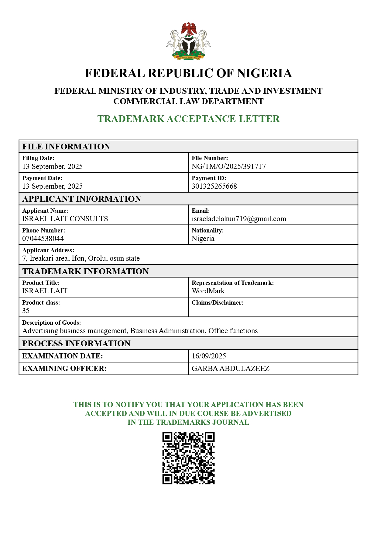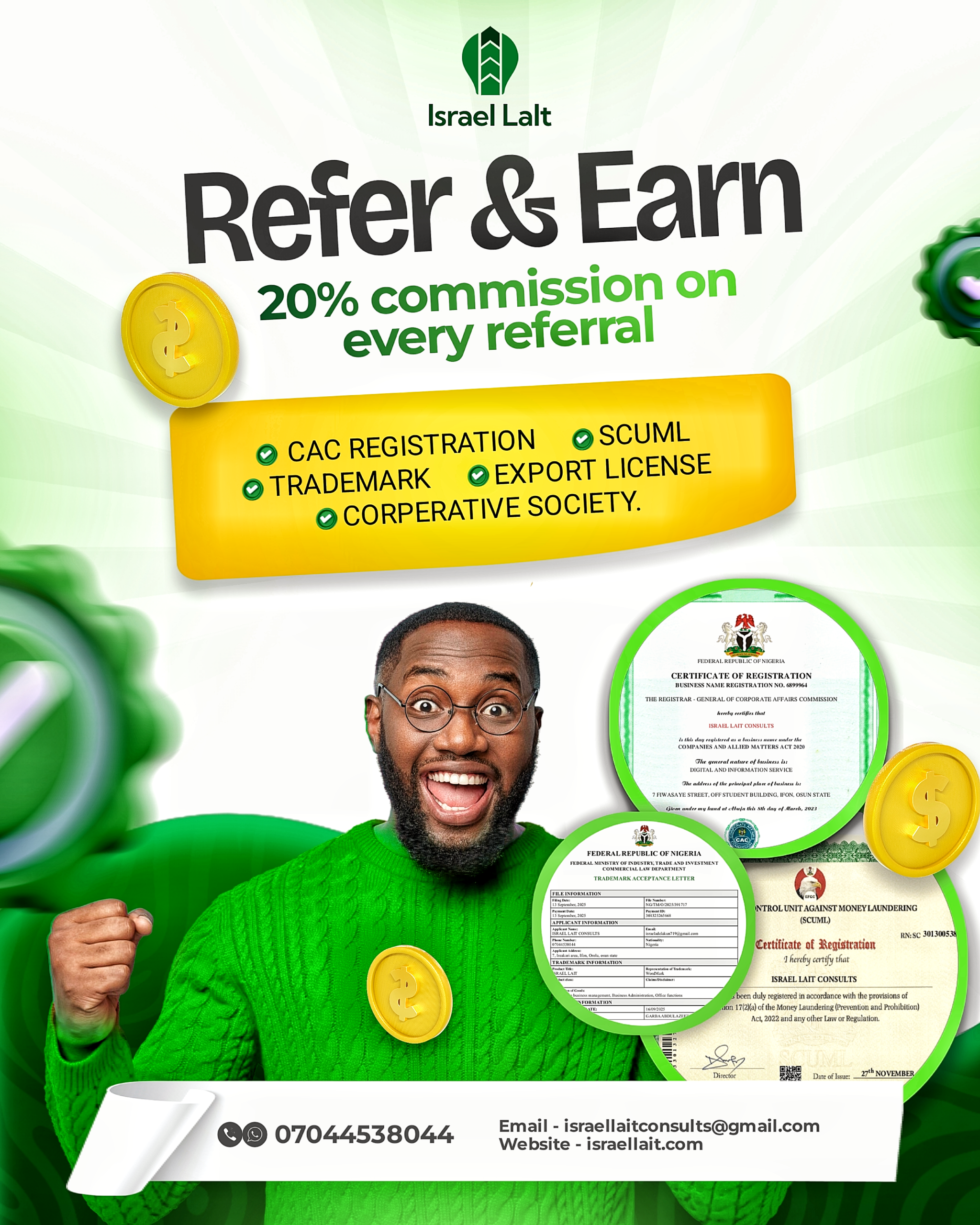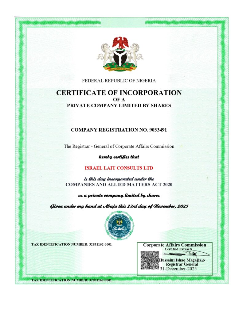 As the founder of Israel LaIt Consults, he has successfully handled numerous registrations with efficiency and precision, making the process simple and stress-free for clients across various sectors.